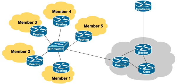 This section discusses how we scale multiple peerings with our network, using what is known as an Internet Exchange Point.