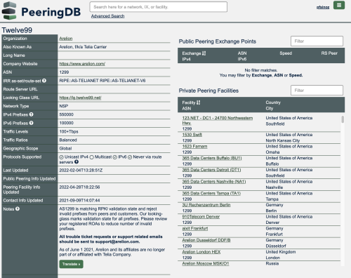 And the final example shows Arelion, the operator of AS1299, one of the international transit carriers serving the global Internet: