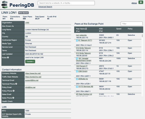 Here are some example entries to show what is possible. The first example (publicly accessible) is of LINX, the London Internet Exchange: