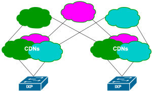 Content distribution networks participate actively at Internet Exchange Points and often will provide servers/caches to be hosted either at the IXP or embedded within the network operator infrastructure itself.