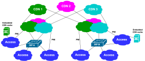CDNs participate actively at Internet Exchange Points and often will provide servers/caches to be hosted either at the IXP or embedded within the network operator infrastructure itself.
